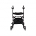 Deambulatore con ruote e struttura pieghevole in alluminio. Ruote anteriori piroettanti. Ruote posteriori fisse dotate di freni. Dotato in configurazione base: