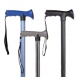 Aluminium lady cane with wooden derby handle, easily height adjustable through the locking pivot. Rubber tip. Color: Blue.