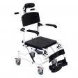 Comfortable wheelchair with wheels, two of which have parking brakes, equipped with: