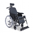 Transit wheelchair/seat with tilting seat, adjustable backrest (from 90° to 120°) and height, equipped with multi-adjustable headrest and lateral translation: