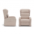 A compact electric lift chair with a motorized mechanism with 2 motors (1 motor version available upon request). The solid frame is assembled from wood composite (plywood and solid wood) and covered with non-deformable polyurethane foam. Coverings made in nine fabrics with a wide range of colours (see colour/fabric table). Non-removable cover. PVC feet. The two-motor mechanism allows independent adjustment of the backrest and leg rest. Equipped with a double footrest extension panel and 2 rear wheels for easy movement when tilted backward. The ROLLER mechanism with four independent wheels, operated by a pedal at the rear, is available upon request for easy movement between rooms.