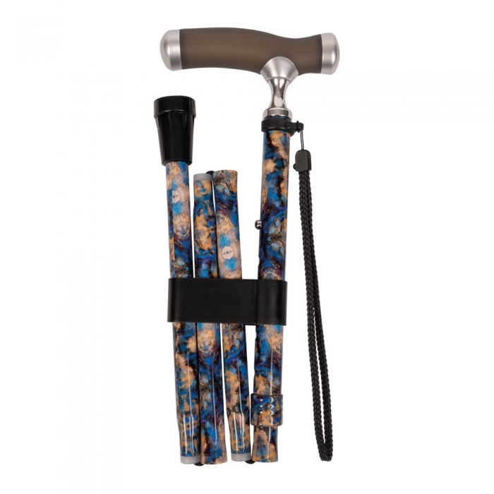 Bastone in alluminio, diametro tubo da 19 mm con impugnatura a T rivestita di morbido silicone, in versione tubo pieghevole o tubo intero, regolabile in altezza.