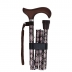 Bastone in alluminio regolabile in altezza, colore fantasia a fiori con manico in legno Marrone, disp nibile nella versione tubo intero o pieghevole. Puntale in gommaMarrone.
