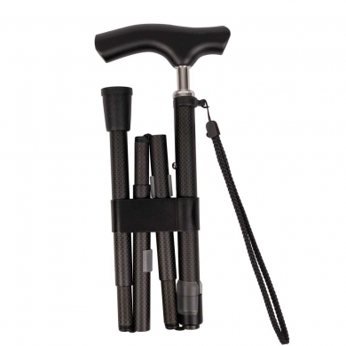 Bastone in fibra di carbonio, diametro tubo da 19 mm pieghevole con impugnatura da donna in legno regolabile in altezza.