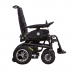 Carrozzina elettrica da esterni con ammortizzatori posteriori e telaio riducibile per agevolare il trasporto.