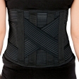 Corsetto lombare in tessuto elasticizzato ad alta contenzione con quattro stecche per il sostegno lombare flessibili. Dotato di due fasce supplementari in tessuto millerighe per meglio regolare il sostegno e la contenzione. Chiusura anteriore a velcro.