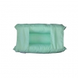 Protezione per ginocchio e gamba realizzata in fibra cava siliconata con fodera in cotone 100%. Fasce di chiusura in cotone con sistema di fissaggio a velcro.