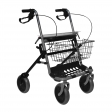 Deambulatore con ruote e struttura pieghevole in acciaio verniciato. Ruote anteriori piroettanti. Ruote