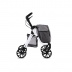 Deambulatore rollatore con struttura a carrello porta spesa in alluminio a quattro ruote, anteriori da 10” e posteriori da 8” con sistema frenante. Maniglia di spinta regolabile in altezza con freno a barra facile da utilizzare. Due borse, 1 anteriore di grande capienza con cerniera di chiusura e 1 posteriore in tessuto a rete, aperta. Dotato in configurazione base: