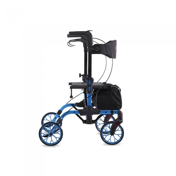 Deambulatore rollator con struttura in alluminio a quattro ruote da 8”, le posteriori con sistema frenante, dotato in configurazione base: