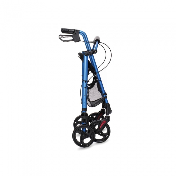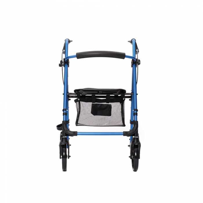 Deambulatore rollatore con struttura pieghevole in alluminio a quattro ruote, le due anteriori