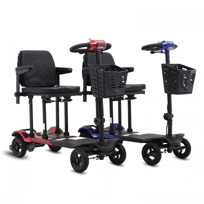 Scooter elettrico con piantone e sedile abbattibili che, unitamente al peso contenuto, garantiscono estrema facilità di trasporto.